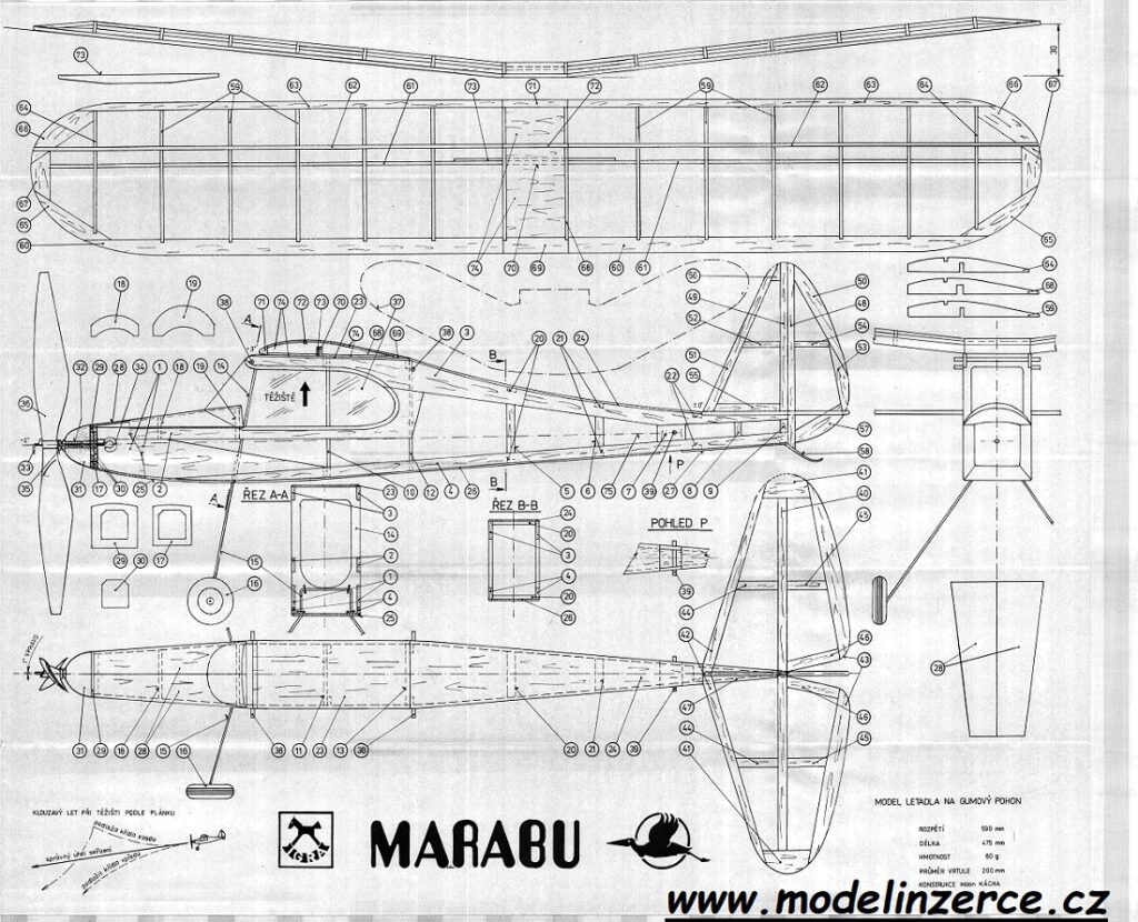 Marabu je volně létající model na gumový pohon pro začátečníky i pokročilé modeláře. Plánek ke stažení zdarma je z originální stavebnice od výrobce Igra.